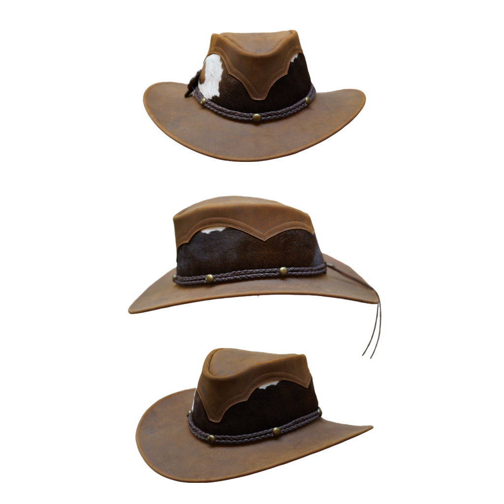 Combined AUSTRALIAN DESIGN COLLECTION COMBINED OF LEATHER AND FUR S M L XL DENVER CHSPCPCCHandmade Australian design hat in a brown color 100% leather and fur details DENVER CHSPCPCMHandmade Australian design hat in a light brown color 100% leather and fur details DENVER CHSPCPCNHandmade Australian design hat in a black color 100% leather and fur details